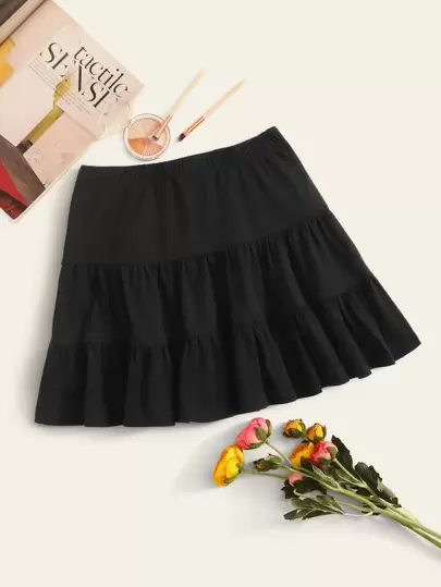 SHEIN WYWH Elastic Waist Ruffle Hem Skirt - Black - View 1