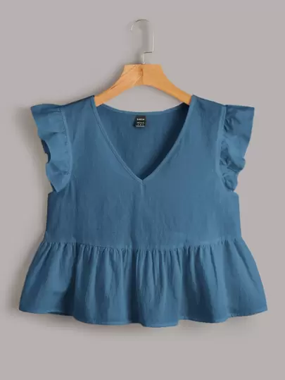Soleia Butterfly Sleeve Ruffle Hem Top - Blue - View 1