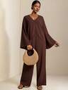 Vesra Women's Solid Color Pleated Metal Shoulder Decor Tank Top Brown Sleeveless Top