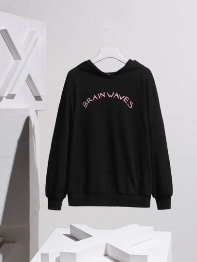SuzetteVidaArtworks Figure and Letter Print Drop Shoulder Pullover - Black - View 1