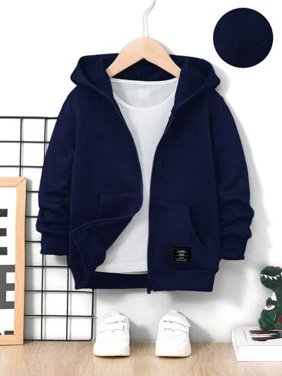 SHEIN Young Boy Casual Comfortable Hooded Zip-Up Sweatshirt In Fall/Winter - Royal Blue - View 1