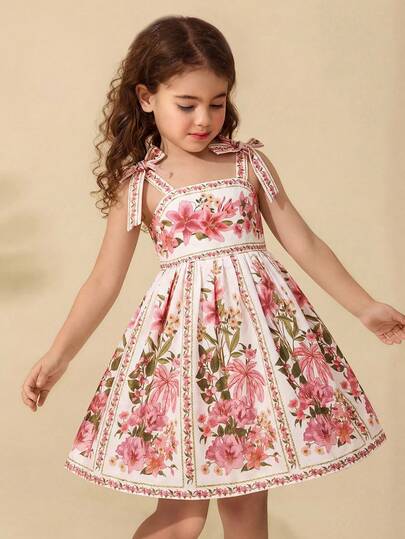 SHEIN Young Girl Woven Floral Ruched Camisole Dress - Multicolor - View 1