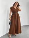 SHEIN Privé Plus Size Elegant Lace Patchwork V-Neck Loose Long A-Line Flare Short Sleeve Dress