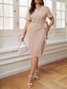 SHEIN Privé Plus Size Flocked Placement Print Fitted Short A-Line Long Sleeve Sheer Dress, Elegant For Valentine's Day Outfit