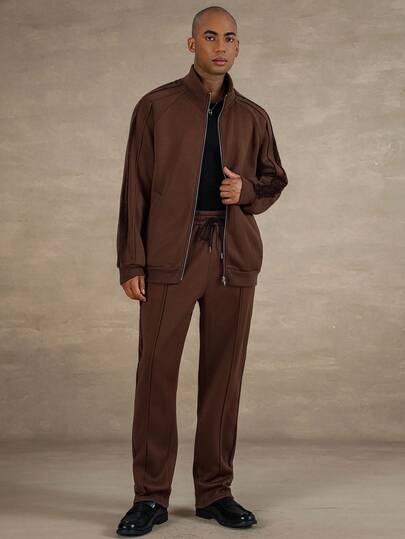 STYNVO Men's Casual Pullover Zip-Up Stand Collar Sweatshirt & Sweatpants Set Men Brown Two Pieces Set Co Ord Set, Fall Clothes - Multicolor - View 1