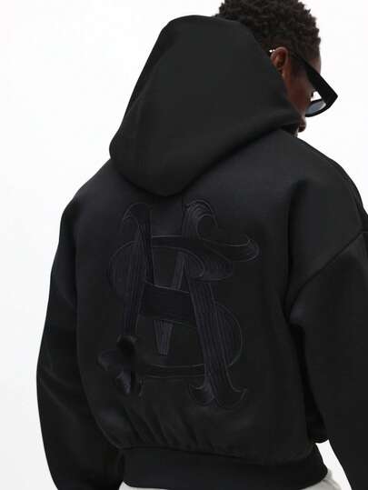 SUMWON Graffiti Pullover Hoodie With Drawstring And Centre Pocket For Casual Streetwear Style - Black - View 3