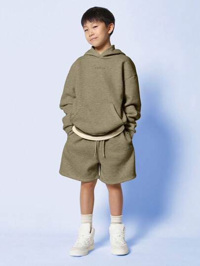 SUMWON Tween Boys Overhead Hoodie And Short 2 Piece Set - Army Green - View 1