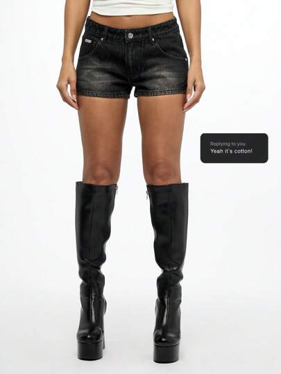 SUMWON WOMEN Vintage Style Low Rise Denim Mini Shorts Festival Summer Fashion Distressed Hot Pants Streetwear Beach Party Classic Cut - Black - View 1