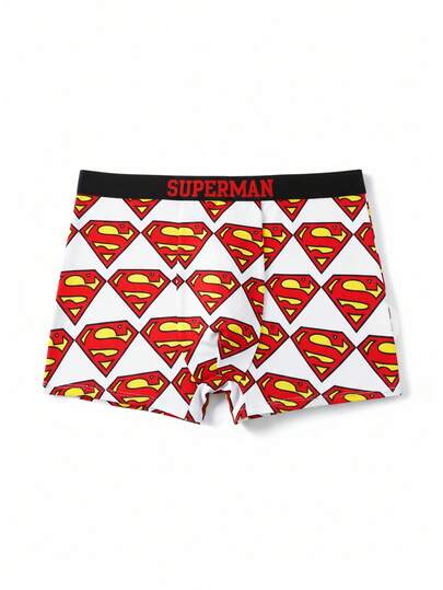 SUPERMAN X SHEIN Men's Soft & Comfortable All-Over Print Letter Tape Trunks - White - View 1