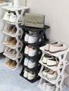 This 9-Tier Vertical Shoe Rack Is Designed For Compact Entryways And Narrow Spaces, Saving Space. This Multi-Functional Plastic Storage Rack Can Securely Hold 9 Pairs Of Shoes, And Is Easy To Assemble And Stackable.