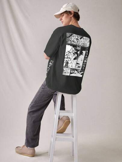 SWAVVY Loose Fit Men's Knitted Leisure Printed T-Shirt - Grey - View 1