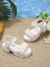 1 Pair Fashionable And Versatile Girls' Simple Straight Strap Anti-Slip Thick Sole Sandals, Stylish And Atmospheric, Very Suitable For Outdoor Wear In Summer, Summer Essential