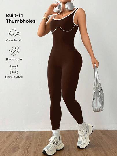 Dewbera Seamless Long Backless Fitted Jumpsuit Compression Shaping Jumpsuit Seamless Workout Jumpsuit Brown Workout Jumpsuit Tummy Control Jumpsuit Seamless Yoga Jumpsuit Brown Seamless Workout Jumpsuit Compression Workout Shaping Jumpsuit Workout Bodysuit Compression Jumpsuit Shaping Compression Shaping Bodysuit - Coffee Brown - View 1