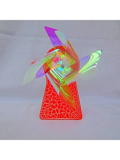 Mini Windmill Design Musical Box For Table Or Bureau With USB-Type C Connector. Soft LED Light With 3 Different Instrumental Melodies And Touch Sensor. - Red - View 3