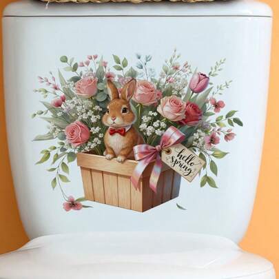 Self-Adhesive Removable Spring Rabbit Flower & Window Cling Film - Plastic Sticker With Spring Rabbits, Flowers & Butterflies For Doors, Mirrors - Easy Peel & Stick Wall Decal For Decor - Multicolor - View 1