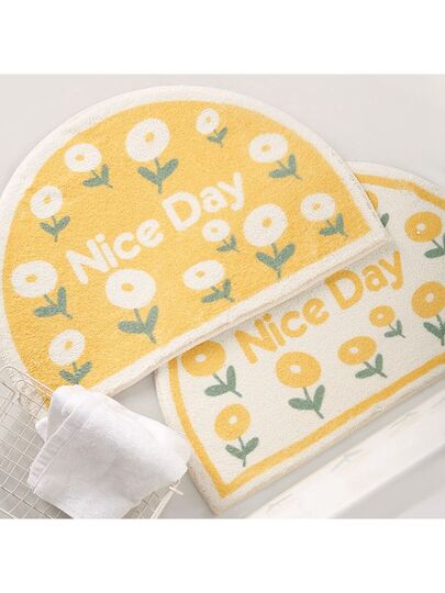 Semicircular Yellow Flower B Bath Rug For Bathroom - Little yellow flower B - View 1
