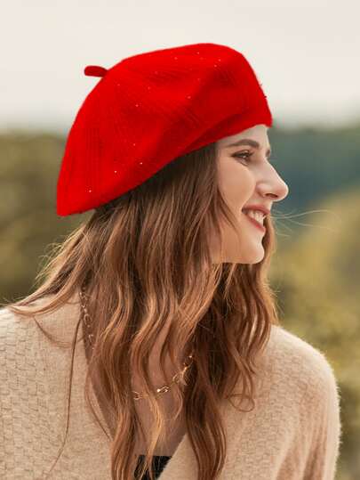 2026 New Fashion Versatile Unisex Sequin Beret Hat - Red - View 1
