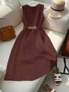 SHEIN Clasi Women's Elegant V-Neck Orange Midi Dress With Metal Ring Buckle Waist Belt, Fitted Waist Design, Spring/Summer