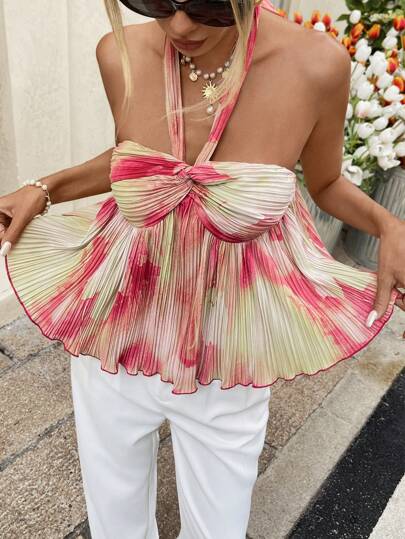 Serisse Women's Tie Neck Printed Blouse Summer - Multicolor - View 1