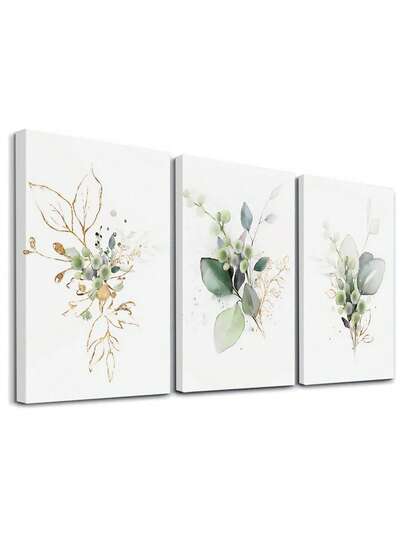 Set Of 3 Watercolor Style Wall Art, Berry Wall Decor, Green Leaves Canvas Prints, Botany Home Decor, Retro Style Artwork Wall Posters Wall Decorations, Natural Room Decor Wall Hanging Poster For Living Room Bedroom Bathroom ,Wall Art With Frame - 3Pcs/Set - View 1