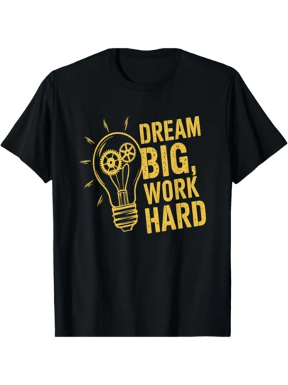 Dream Big Work Hard Motivational Ideas Productivity Theme T-Shirt - Black - View 1