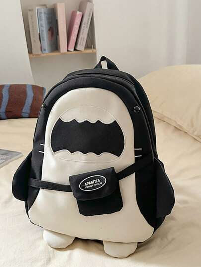 Shark Shaped Backpack, High Capacity Student Bag, Back To School - Black - View 1