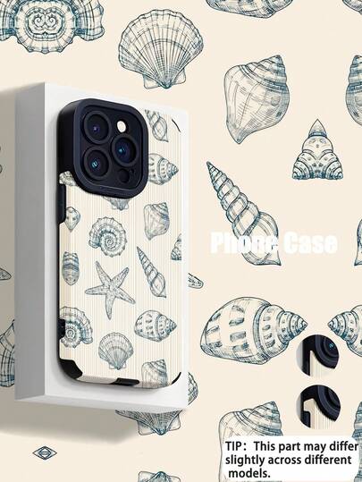 Shell 1pc New Blue Linear Seashell & Starfish Pattern Classic Anti-Drop Soft TPU Phone Case Compatible With IPhone And S17/S17 Air/S17 PRO/S17 PRO MAX - Multicolor - View 1