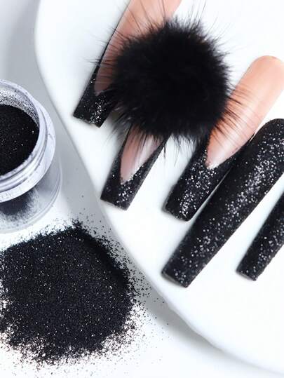 Shiny Black Sugar Nail Glitter Powder Snow Flock Fabric Pigment Powder Nail Art Decorations Gel Polish Manicure DIY Accessories - Black - View 1