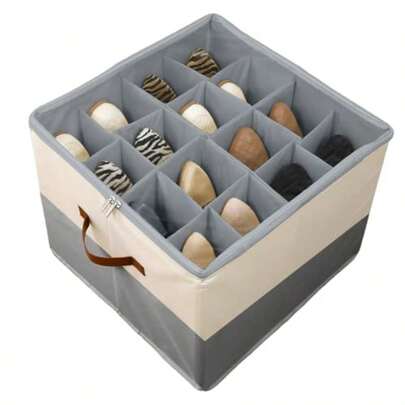 Shoe Storage Box Organizer Fits 16 Pairs Large Shoe Box Container With Adjustable Dividers Foldable Space Saving Shoes Holder - Griege - View 1