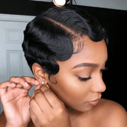 Short Vintage Finger Waves Pixie Cut Wig 13x4 Lace Frontal Remy Human Hair Wig Pre Plucked Human Hair For Women - Multicolor - View 1
