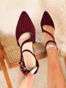 Women's Flat Shoes With Bow Decor, Closed Toe, Ankle Strap, Pointed Toe, Comfortable, Non-Slip, Spring/Autumn Flat Sandals, Apricot Color