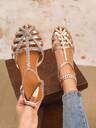 Women Hollow-Out T-Strap Flat Sandals, Summer Shoes With Criss-Cross Straps, Woven Peep Toe Comfortable Breathable Non-Slip Shoes, Vintage French Style In Brown