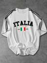 Shwiy Men's Summer Sporty Fashion Black Tape Short Sleeve T-Shirt With Brazil Flag, Letter & Star Print, Casual School/Daily Wear, White Color, Boyfriend Gift