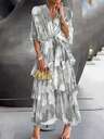 Plus Size Women's Spring/Autumn V-Neck Lace Patchwork Ditsy Floral Long Sleeve Casual Dress, Elastic Waist Elegant Maxi Dress Suitable For Outdoor Wear