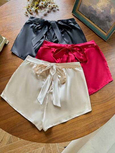 SHEIN 3pcs Satin Pajama Pants Set With Bow Decor Back - Multicolor - View 1