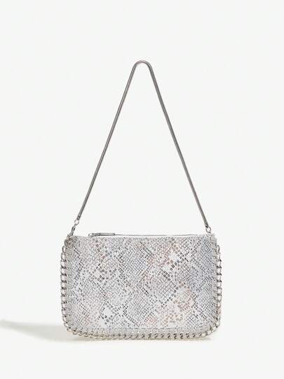 SHEIN BAE Silver Snake Pattern Woven Iron Chain Shoulder Fashionable Bag - Silver - View 1