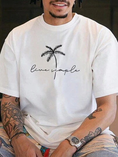 Simple Studio | Men's Letter & Palm Tree Print Round Neck Short Sleeve T-Shirt - White - View 1