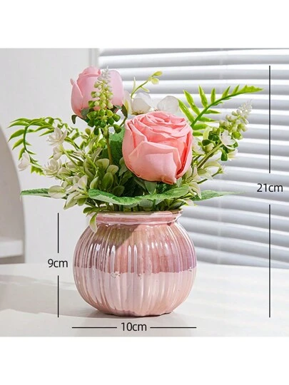 Simulated Potted Plants, Miniature And Fresh Style Fake Flower Pot Set, Home Desk Room Decoration For Living Room Office - Type C - View 1