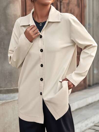 Mulvari Single Breasted Drop Shoulder Belted Coat - Apricot - View 4