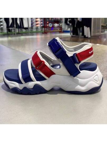 Skechers Women's Casual Comfortable Versatile Hook And Loop Platform White-Navy Blue Sandals, Suitable For Beach Wear - White-navy - View 1