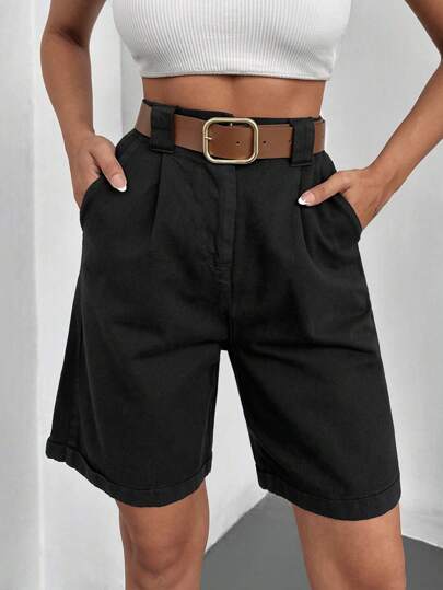 RueChic Slant Pocket Bermuda Denim Shorts - Black - View 1