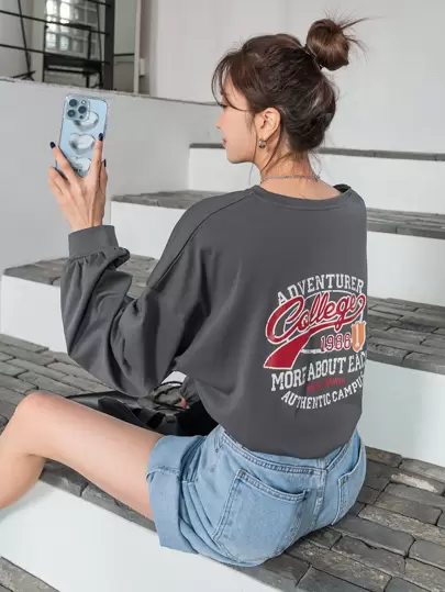 DAZY Slogan Graphic Drop Shoulder Tee - Dark Grey - View 6