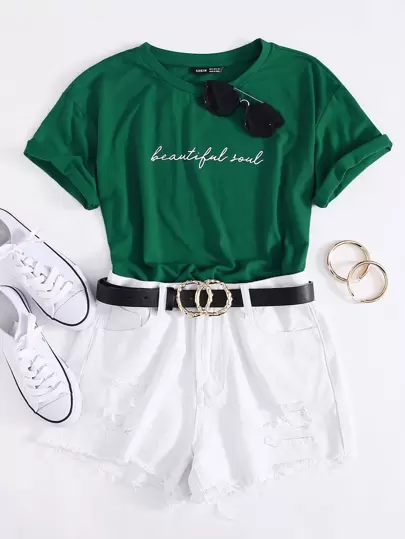 SHEIN EZwear Slogan Graphic Tee Beautiful Soul - Dark Green - View 1