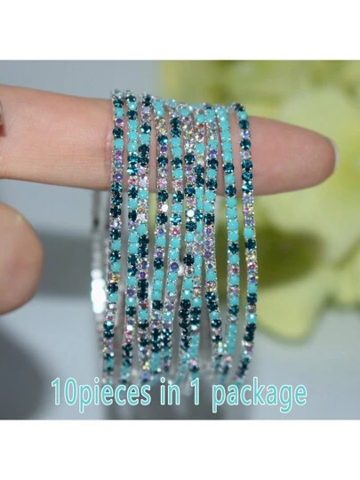 Crystal Elastic Adjustable Bracelet, Small, Multiple Colors Available, Suitable For Couples - Gold - View 1