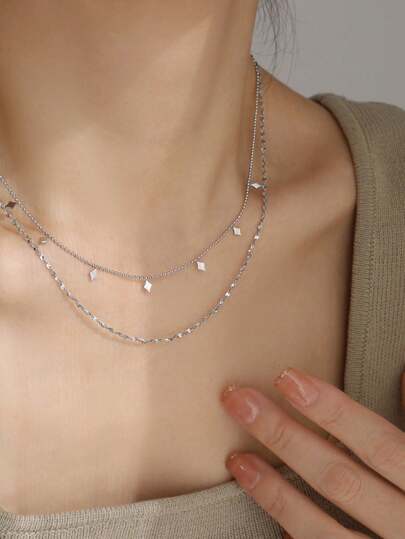 Small Square Necklace Women Light Luxury Fashion High Sense Design - Silver - View 1