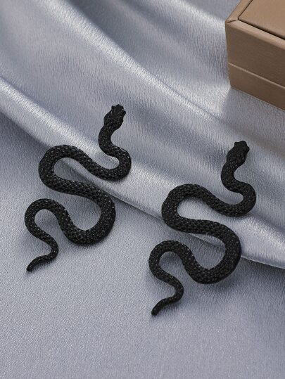 1pair Punk Vintage Exaggerated 3d Metallic Animal Snake Shaped Earrings For Women, Suitable For Party Wear - Black - View 1