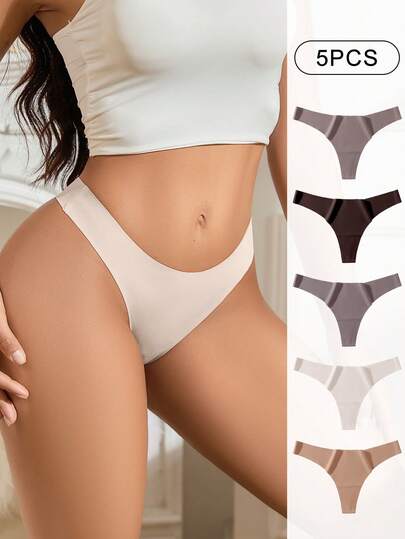 Snug Zone 5pcs/Pack Women's Seamless Solid Color Low-Rise Thong Panties - Multicolor - View 1