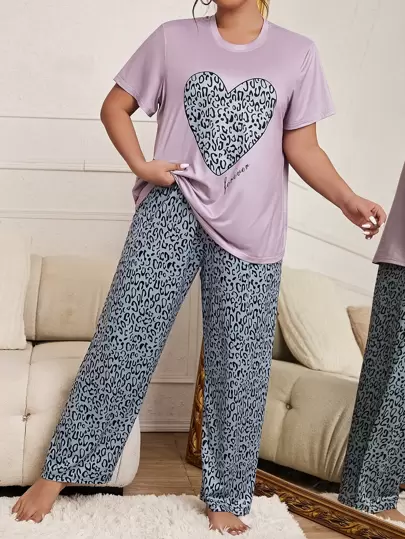 Snug Zone Plus Leopard & Heart Print PJ Set / Pajama Set - Multicolor - View 1