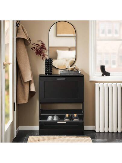 SoBuy Narrow Shoe Cabinet With 2 Flaps, Space-Saving Shoe Rack With Height-Adjustable Compartments – For Hallways, Small Apartments, 20 Kg Load, 60 X 79 X 23 Cm, FSR137 - Black - View 1