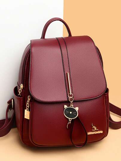 Soft Leather Backpack For Women 2024 High Quality Casual Bagpack School Bags For Teenager Girls Large Capacity Rucksack - Red - View 4
